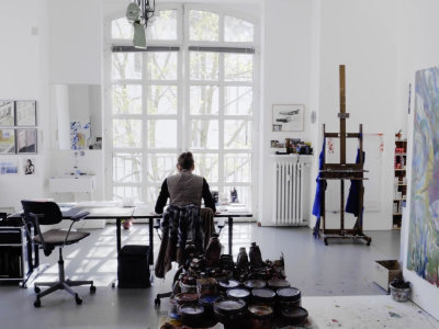 Studio visit with the painter Sabine Moritz in her Atelier in Cologne, commissioned by Pilar Corrias Gallery, 2023
